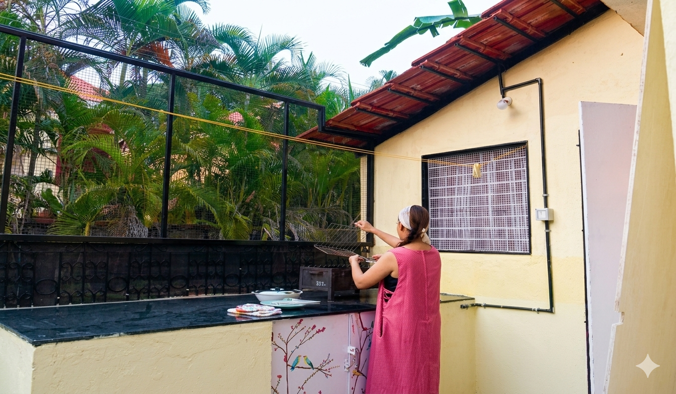 At Greens Heaven Villa, guests can enjoy a comfortable and homely stay with thoughtfully designed amenities. Whether you want to cook your own meals or enjoy a relaxed outdoor barbecue with friends and family, the villa provides the facilities needed to make your holiday in Goa enjoyable and memorable.